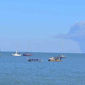 В конце мероприятия флотская молодежь продемонстрировала жителям и гостям города элемент Всероссийского флотского вида спорта - морского многоборья - гребную шлюпочную регату, проявив при этом силу, волю к победе и морские прикладные навыки.