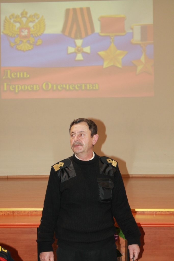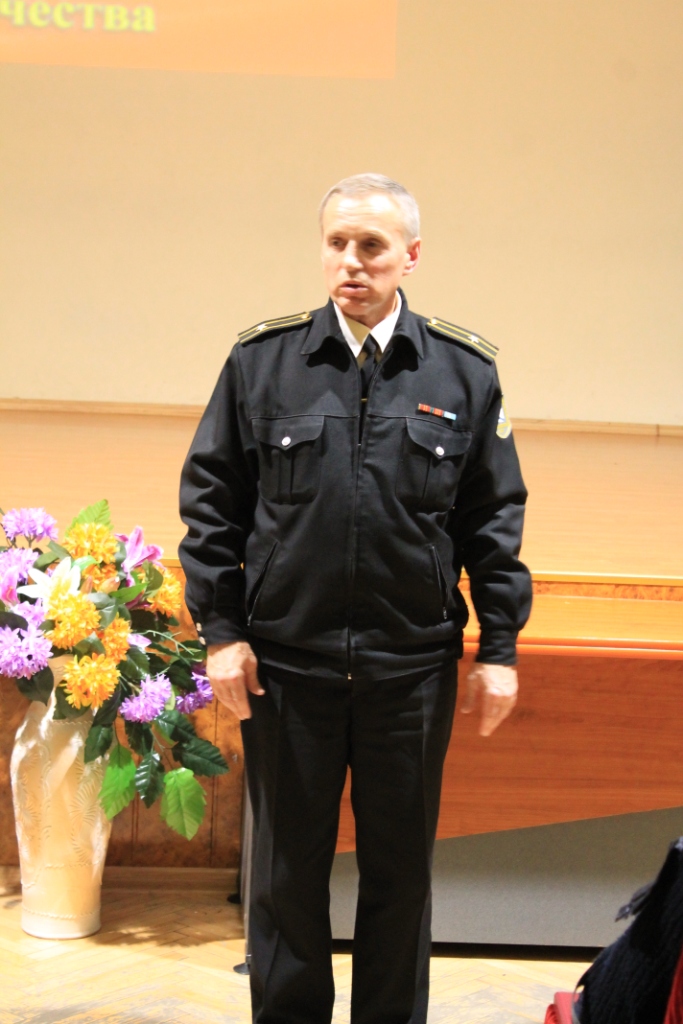 Завершило урок мужества проникновенное выступление председателя Молодежного Морского Клуба Александра Лазарева. Он отметил замечательные слова Императора Александра-III: «У России только два союзника - это армия и флот». Он напутствовал молодежь пробудить в своих душах дух Победы, который пронесли наши предки через всю историю войн: «На святости стояла, строилась и укреплялась Русь; на чести и совести благородных людей держалась Великая Россия…Патриотизм - это любовь, к Родине, к истории, к своему народу. …Когда каждый будет готов положить душу свою за друзей своих, вот эта любовь будет распространяться здесь на земле». Пожелал стать достойными сыновьями и дочерями своего Отечества.
