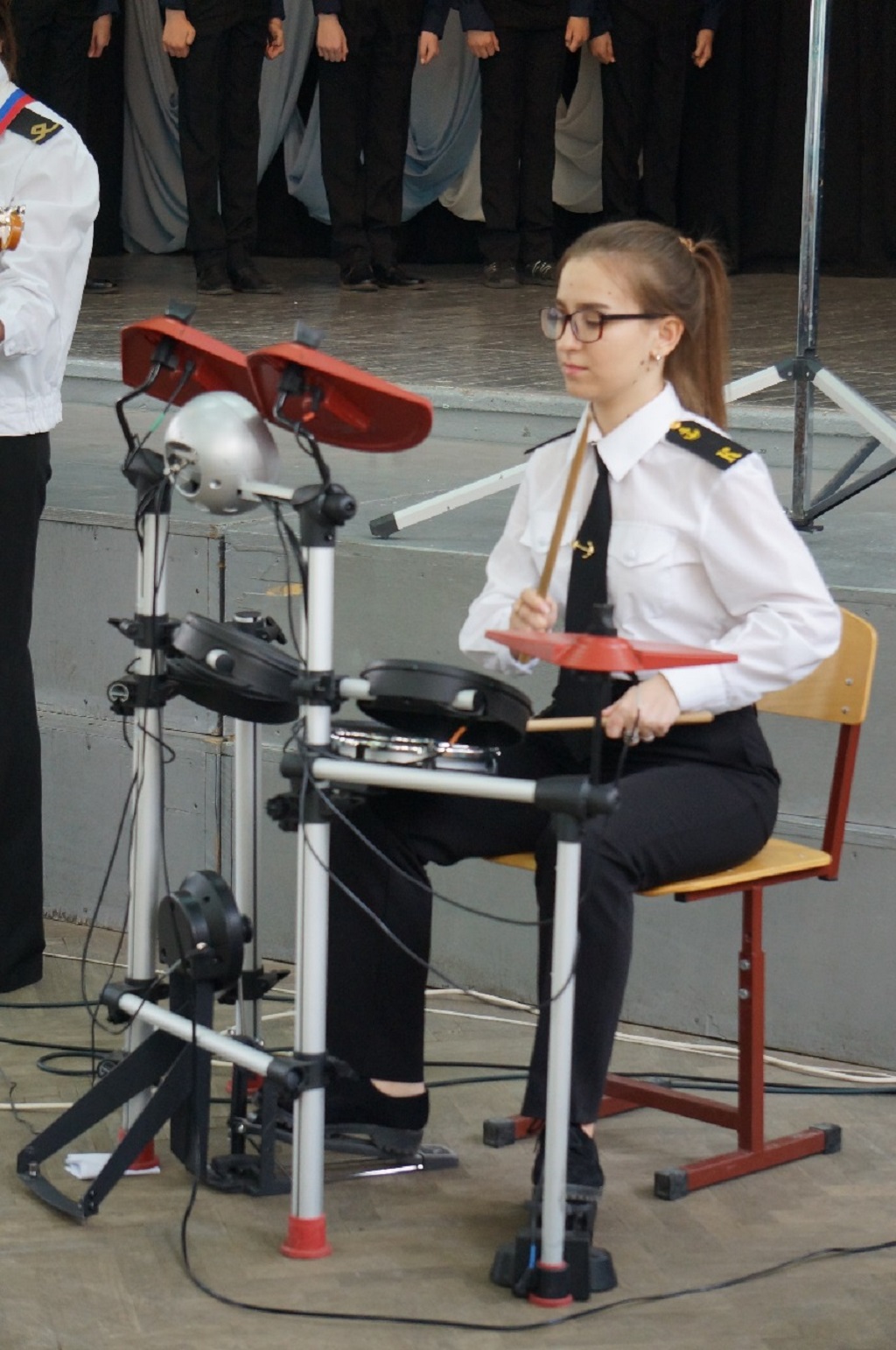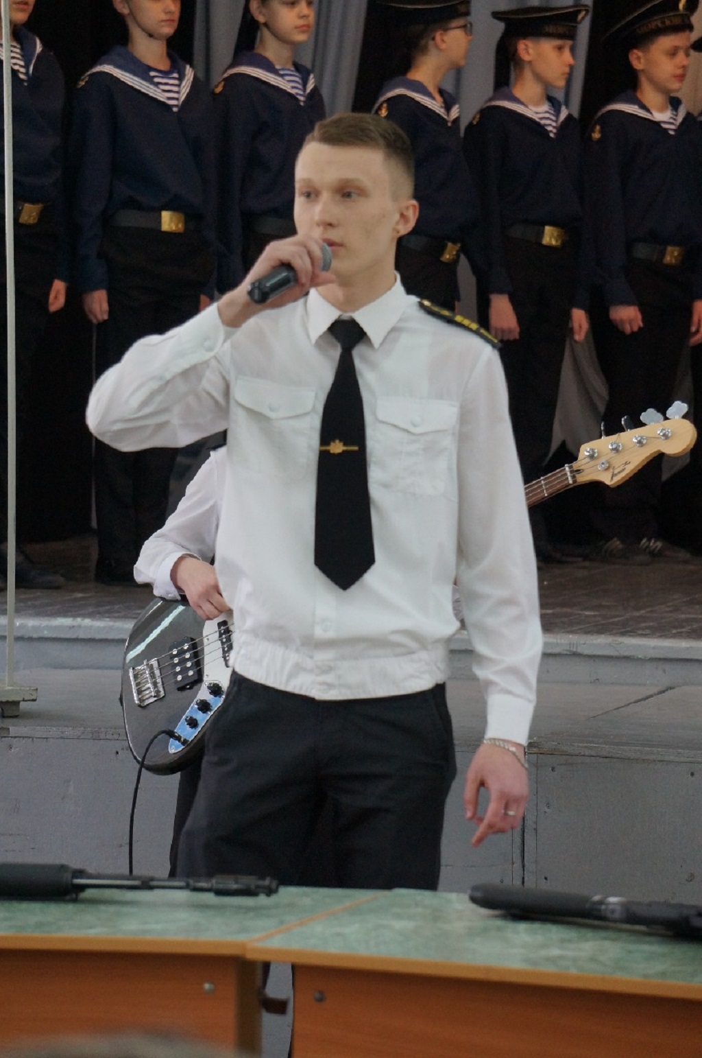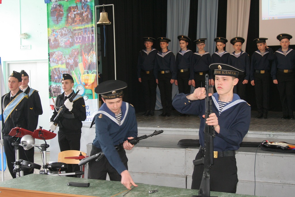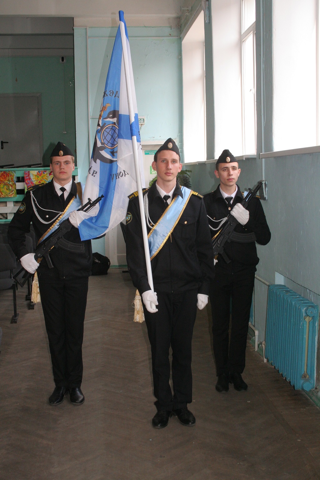 Парадный строй курсантов морского класса МБОУ «Школа №37» в актовом зале, украшенном флагами расцвечивания Военно-морского флота, торжественный подъем Андреевского флага, показные номера по общевойсковой и морской подготовке, завершили задушевным художественным номером вокально-инструментального ансамбля «Возрождение» РРО ВПО «Молодежный морской клуб».