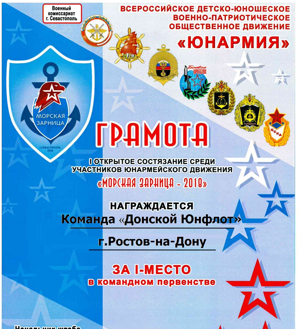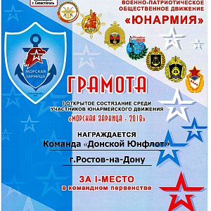 Заслуженную победу одержала Ростовская команда «Донской Юнфлот» в первых открытых Всероссийских соревнованиях по морскому многоборью «Морская зарница-2018», проходивших в городе-герое Севастополе с 15 по 25 июля 2018 года.